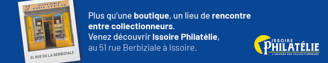 Comme son nom l'indique Issoire philatélie est une boutique basée sur le timbre, Richard le fondateur de la boutique est un spécialiste du timbre de France et des pays francophones, cela inclus les dépendances françaises comme Andorre ou les TAAF, mais également Monaco, les Dom-Tom comme Mayotte, Saint-Pierre et Miquelon ou encore les iles du Pacifique de la Polynésie française, la nouvelle Calédonie ou Wallis et Futuna.