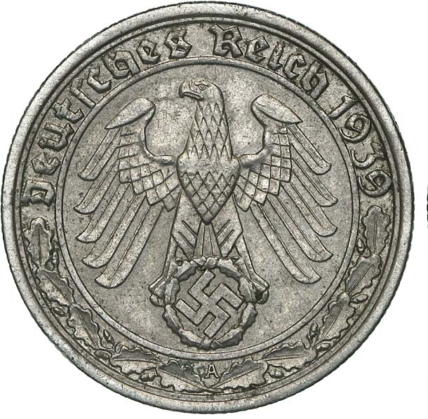 - Même les petites pièces de 1, 5 et 10 Reichspfennig intégraient la svastika dans leur design