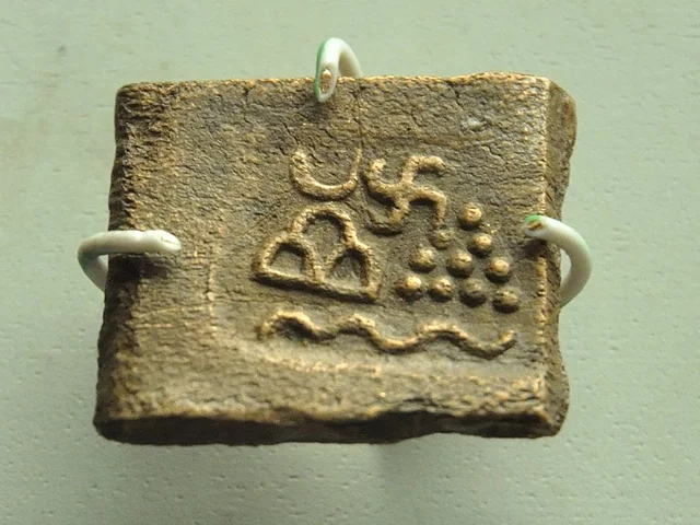 Les pièces Janapadas (VIe-IVe siècle av. J.-C.) : Ces premières monnaies indiennes, antérieures à l'empire Maurya, portaient fréquemment des svastikas parmi d'autres symboles religieux. Frappées en argent ou en cuivre, elles circulaient dans les royaumes du nord de l'Inde et témoignent de l'importance du symbole dans la vie économique et spirituelle.